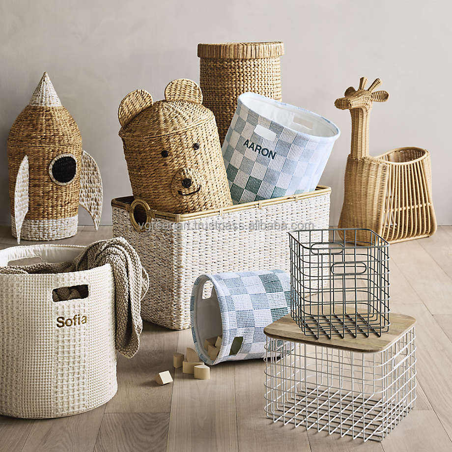 Natural Woven Bamboo and Rattan Laundry Basket Foldable Circle Storage Boxes & Bins Organizer for Home Decor and Kitchen Use