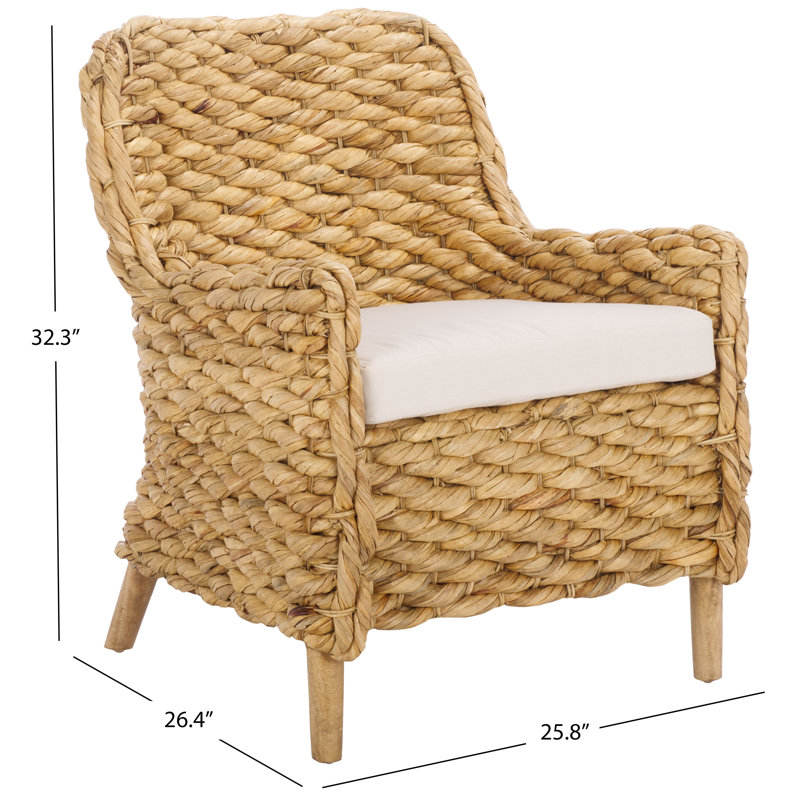 Natural Woven Hyacinth Accent Chair with Cushion Coastal Seating for Living Room