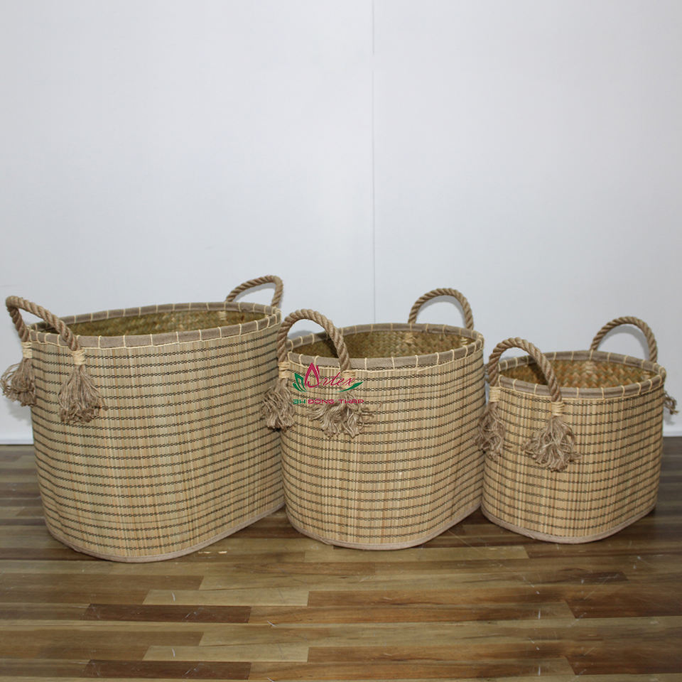 Natural Woven Palm Leaf Wicker Baskets With Handles, Sustainable Home Decor & Storage For Any Room
