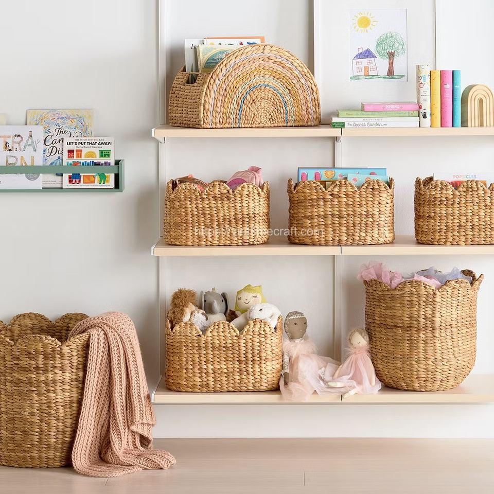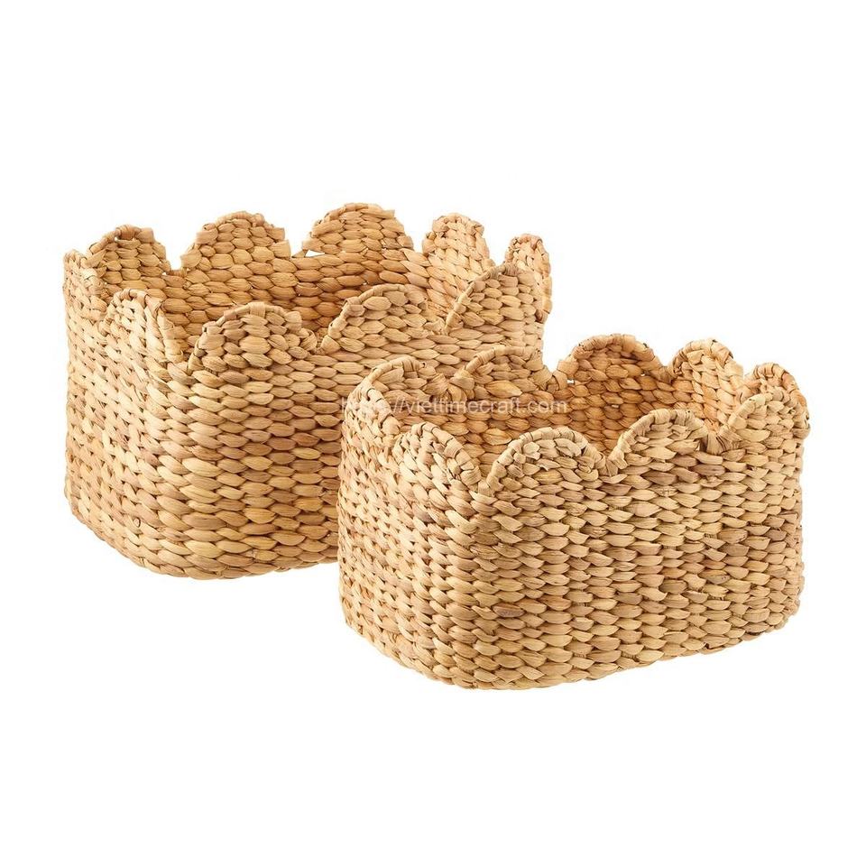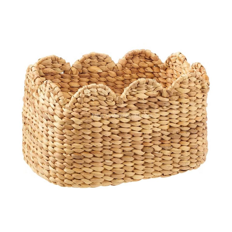 Natural Woven Scallop Edge Storage Basket Rectangle Foldable Design Hyacinth Texture for Home Office Container Store Wholesale