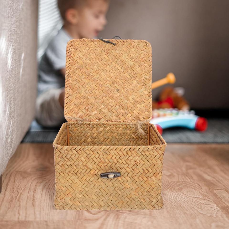 Natural Woven Seagrass Box:Size: W6,7 x H4 inch