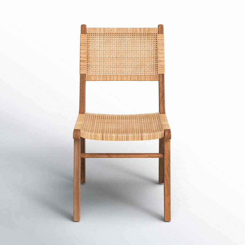 Natural Woven Seat Teak and Rattan High Back Dining Chair