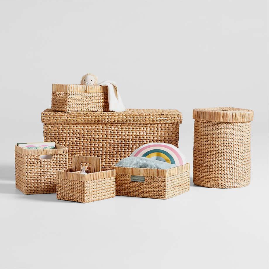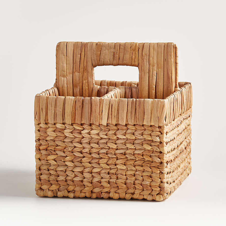 Natural Woven Wicker 3-Compartment Diaper Caddy with Handles Made From Water Hyacinth