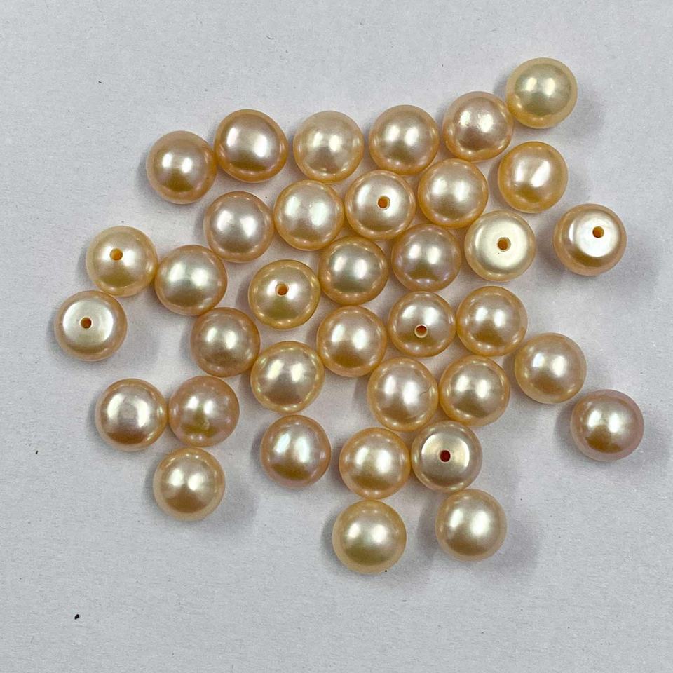 Natural Yellow Color Freshwater Pearl 7mm Stone Flatback Round Shape Gemstone For Jewelry Making Factory Price From Manufacturer