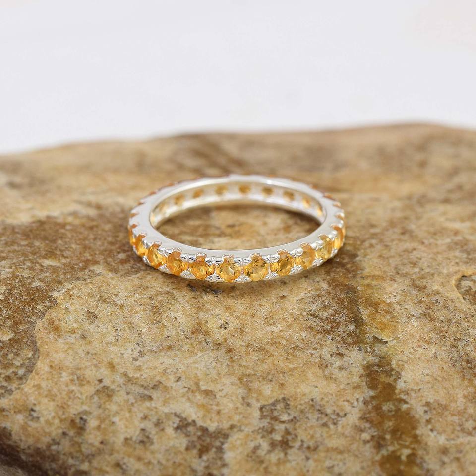 Natural Yellow Gemstone Citrine Full Eternity Promise Ring Pure 925 Sterling Silver Solid Band Jewelry Supplier Manufacturer