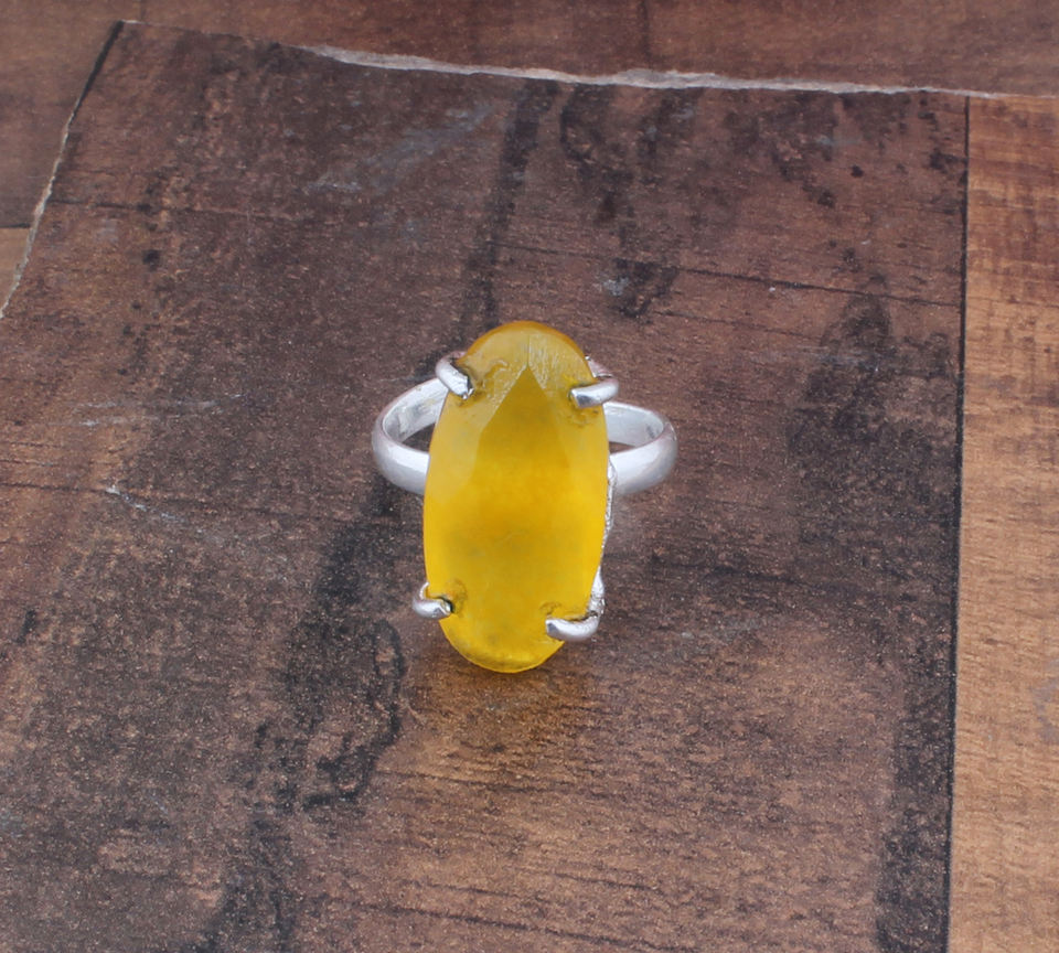 Natural Yellow Jade Bezel Setting Oval Gemstone Ring 925 Sterling Silver Women's Wedding Classic Jewelry
