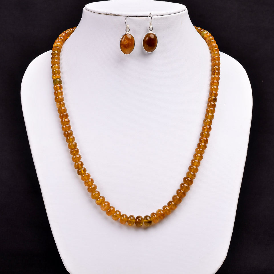 925 Sterling Silver Ethnic Style Necklace Earring Set Natural Yellow Tourmaline for Engagement Weddings Anniversaries Parties