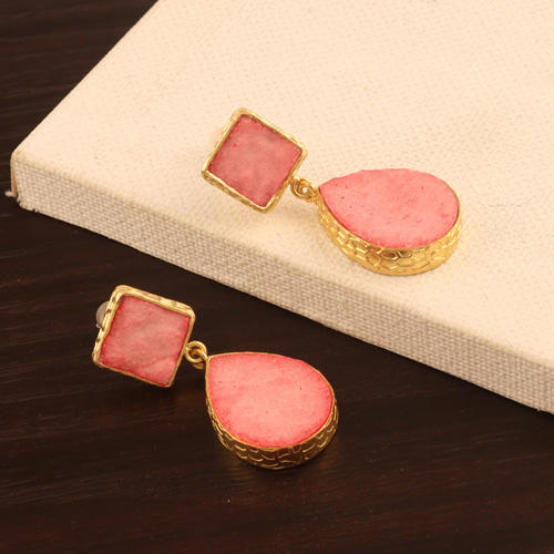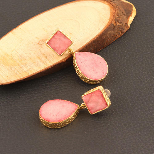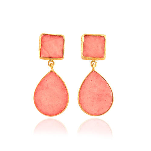 Natural Beautiful Crystal Double Sugar Agate Druzy studded Drop Earring Brass 18k Gold Plated Designer Collet Setting Earrings
