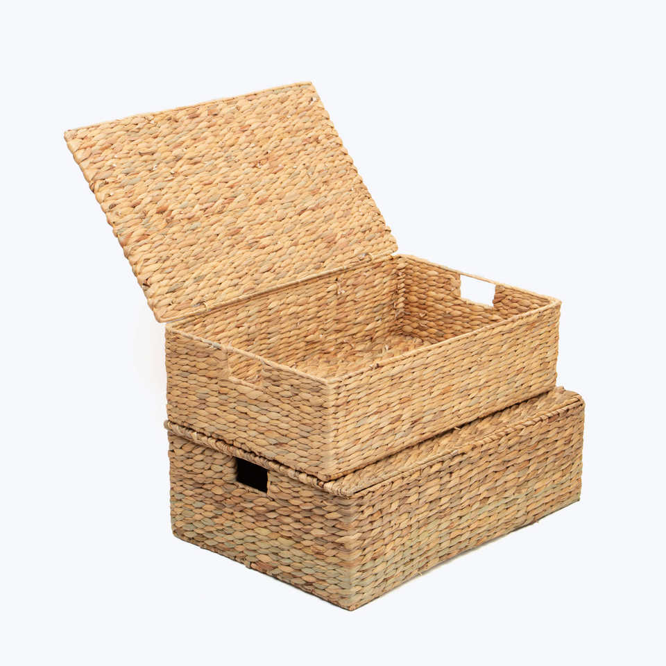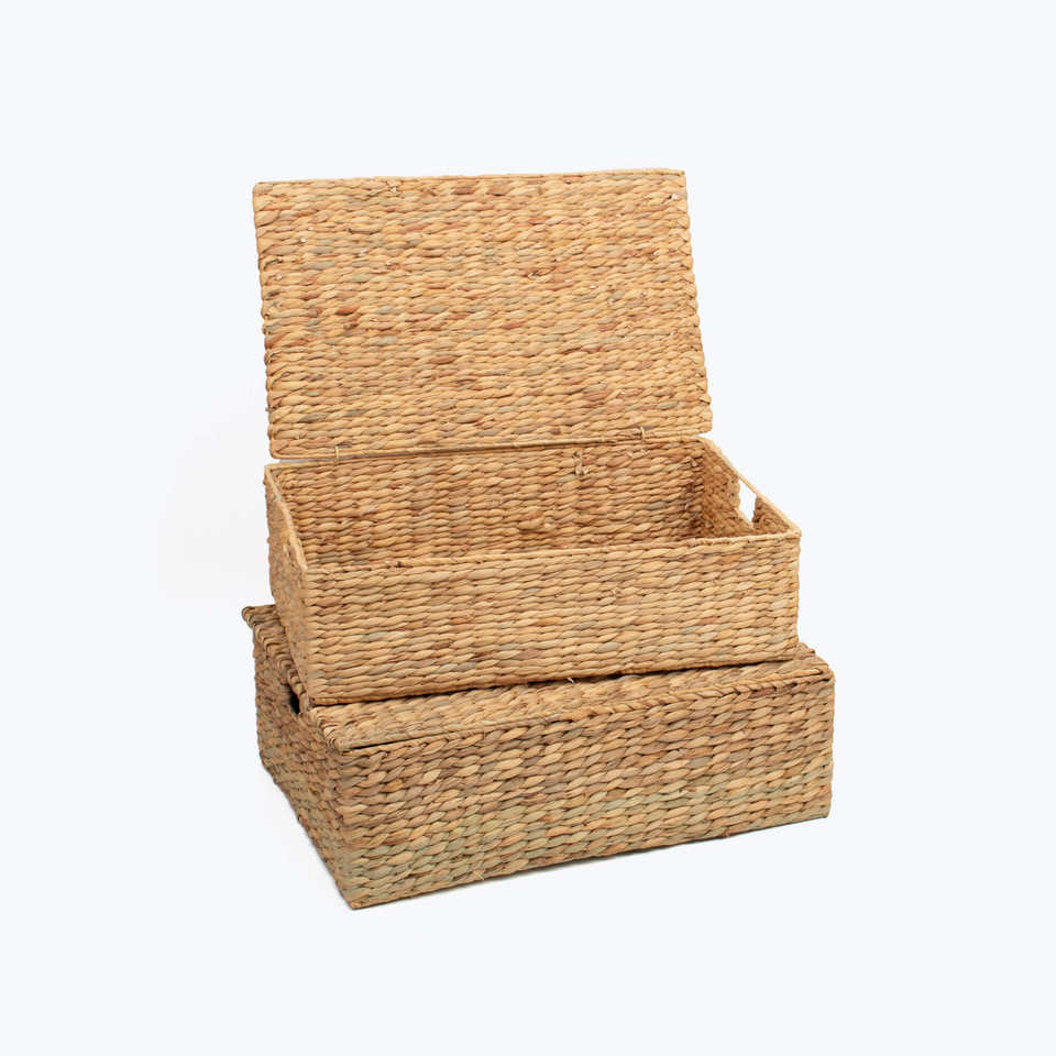 Natural Bin Water Hyacinth Basket Boxes Handmade Sustainable Storage Bins Straw Box Baskets