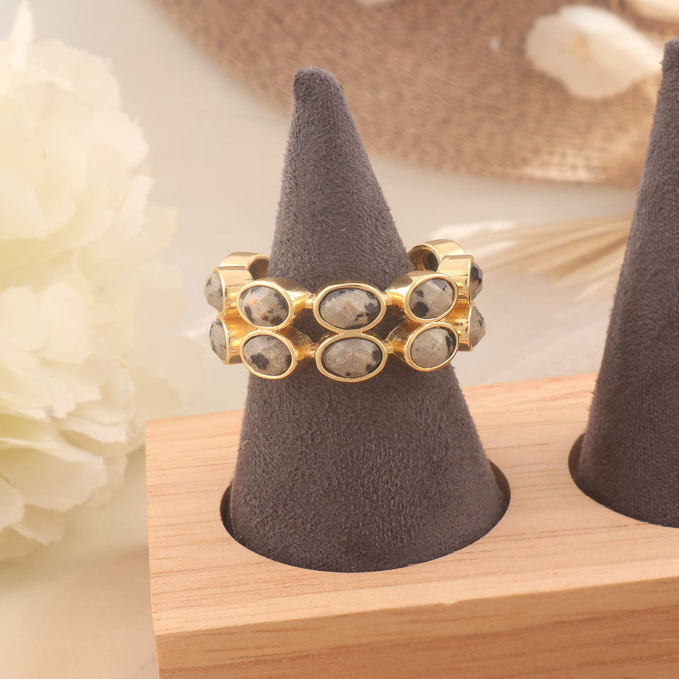 Natural dalmatian jasper gemstone rings fashionable eternity rings double band designer finger ring for women jewelry