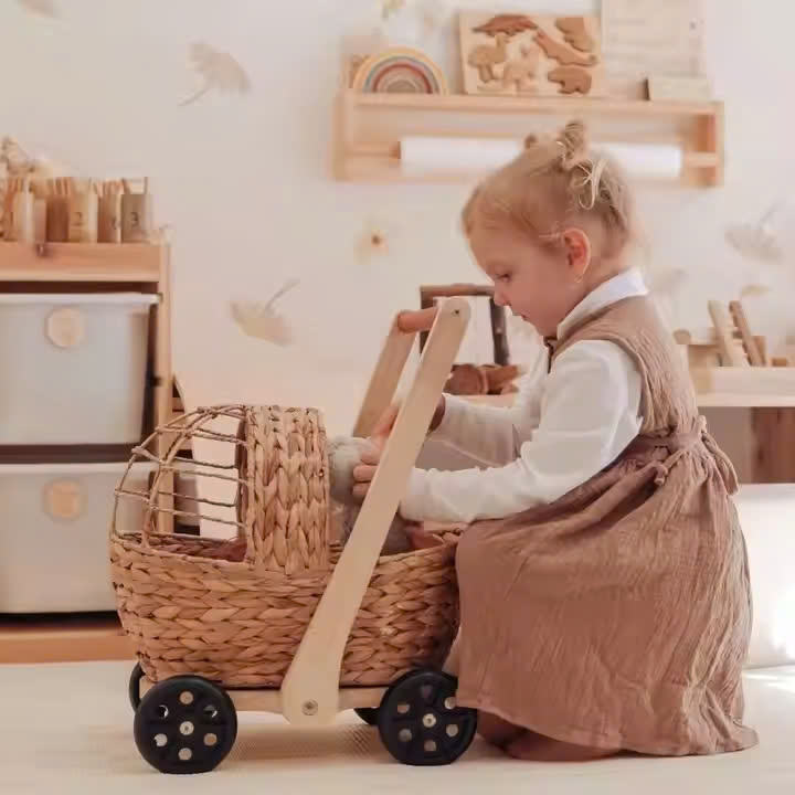 Natural Doll Pram Training Walkers for Toddler Handcrafted Water Hyacinth Kid Toy Carriers Walking Strollers Vietnam