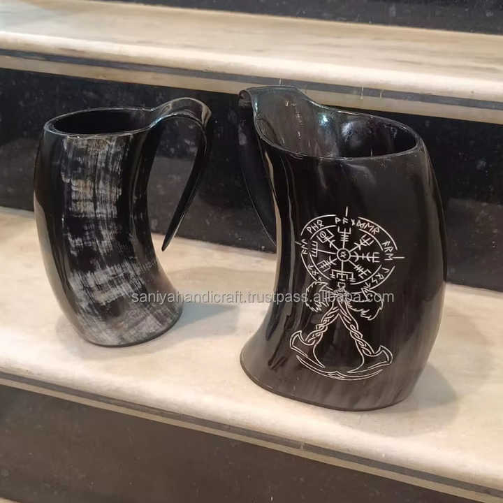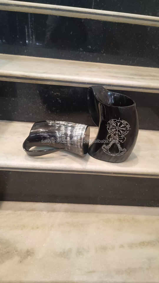 Handmade Natural Crafts-Animal Style Polished Drinking Horn Mug for Home Parties and Hotels