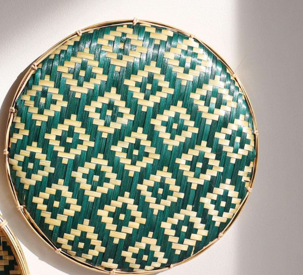 Natural fiber handwoven basket tray suitable for serving organizing or wall hanging purposes