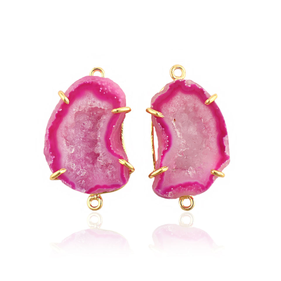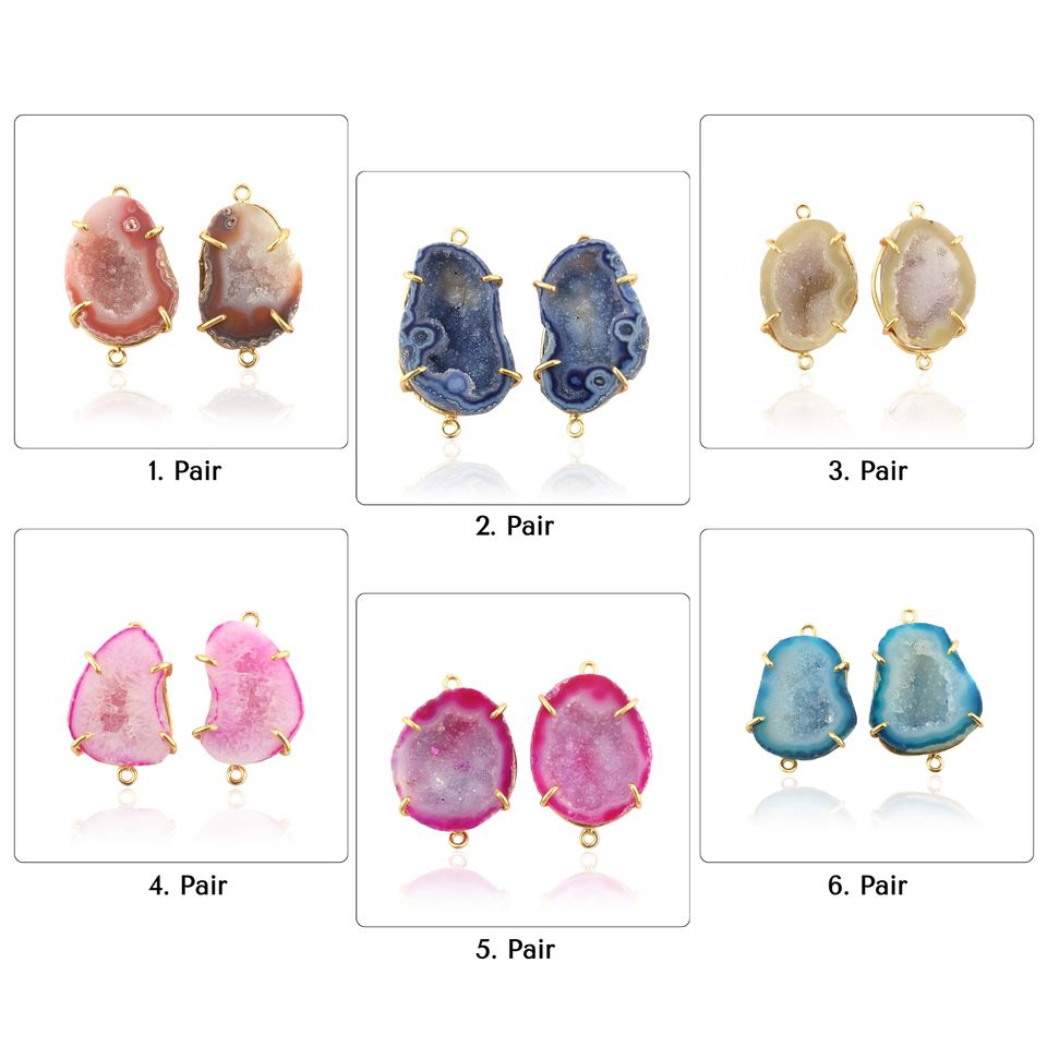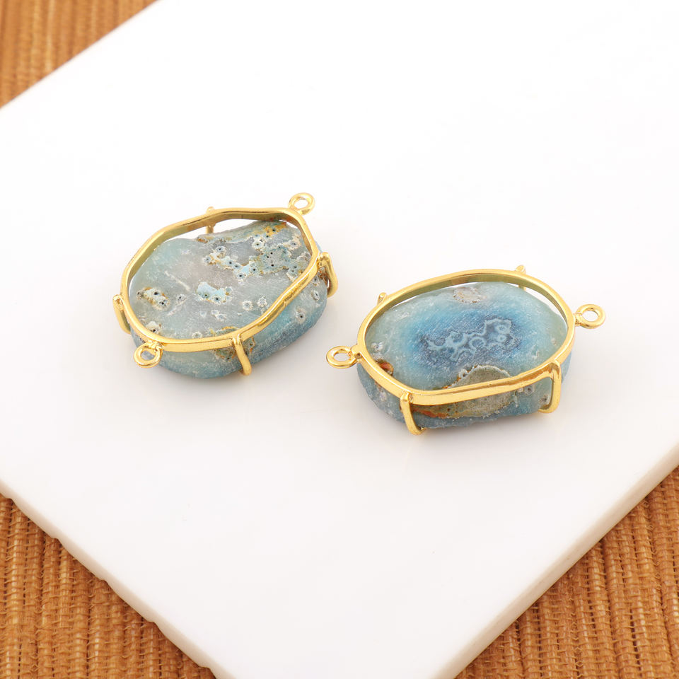 Natural freeform brass connector for DIY jewelry making irregular geode druzy pair prong setting crystallize halved agate geode