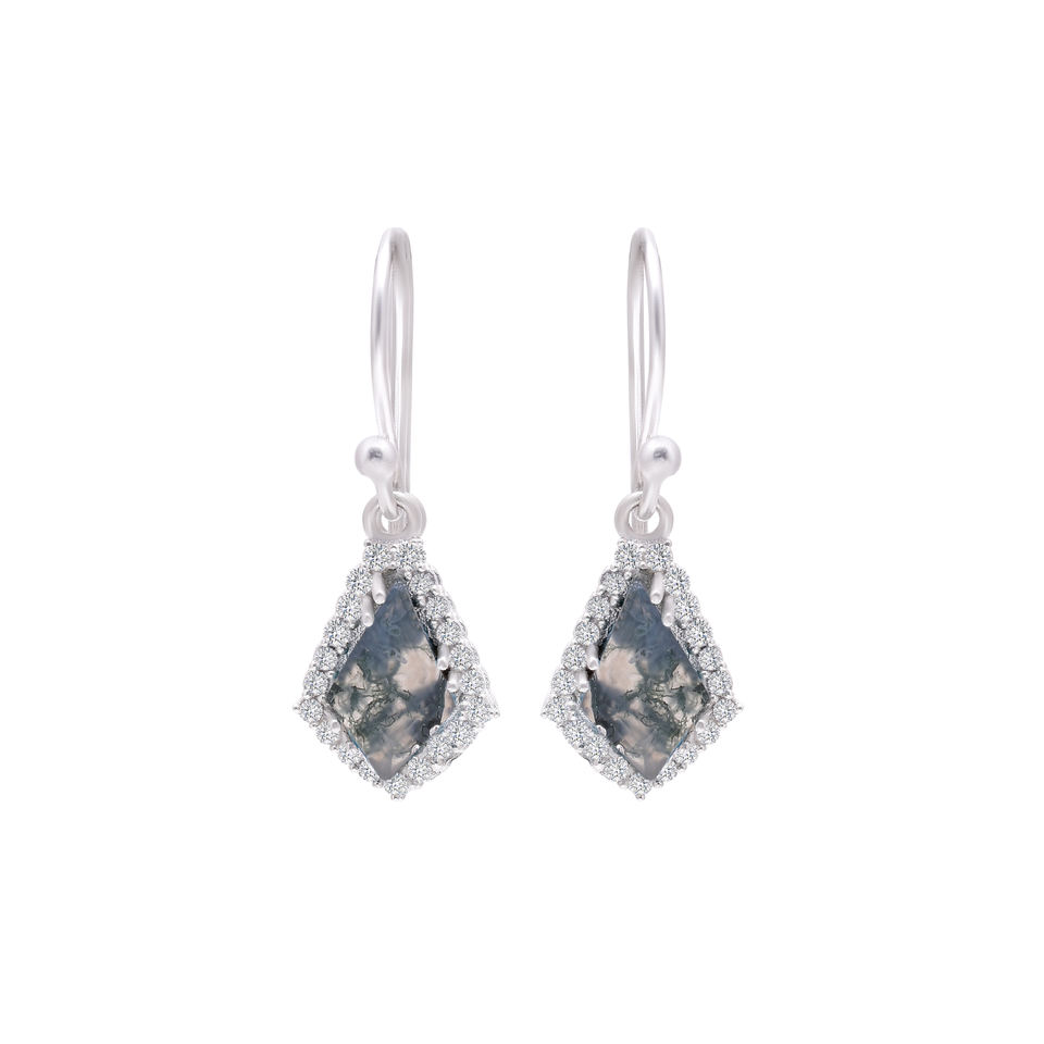 Natural moss agate hook earring solid 925 sterling silver cubic zirconia drop dangle faceted gemstone shield earrings for women