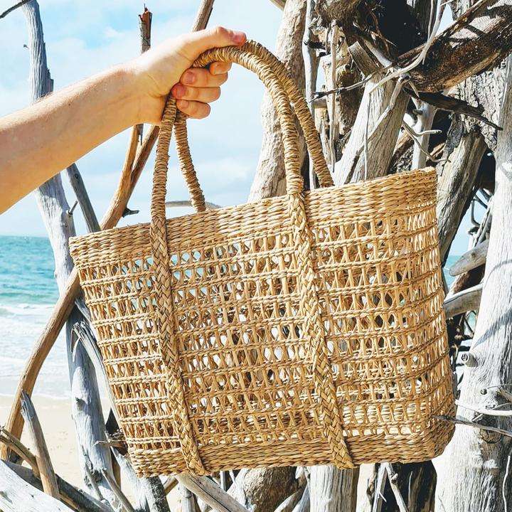 Natural Open Weaving Seagrass Summer Tote Bag 2021