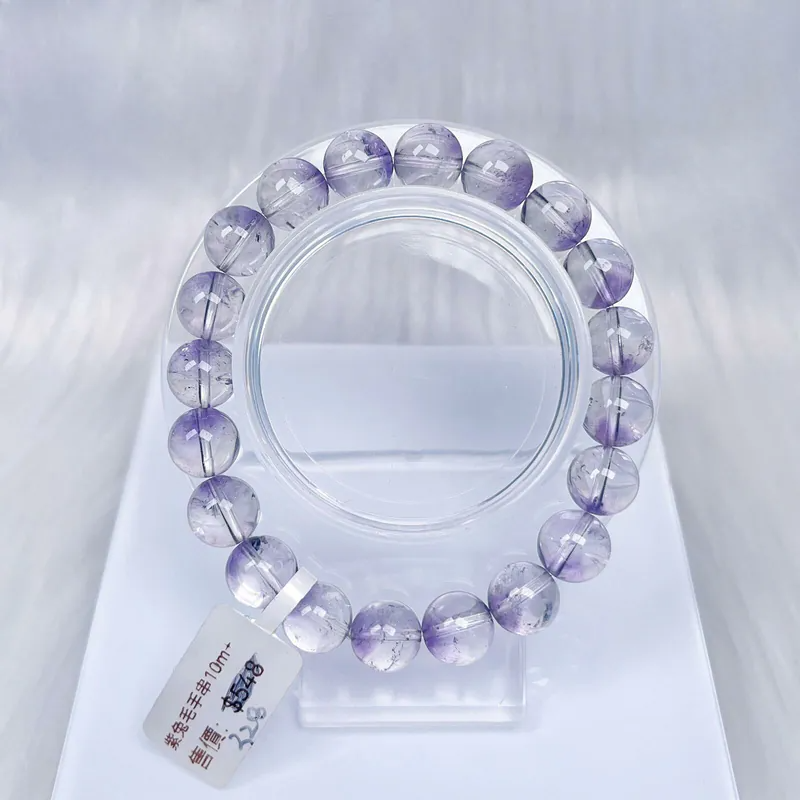 Natural purple rabbit fur bracelet crystal beaded bracelet women's fashion round stone elastic rope bracelet