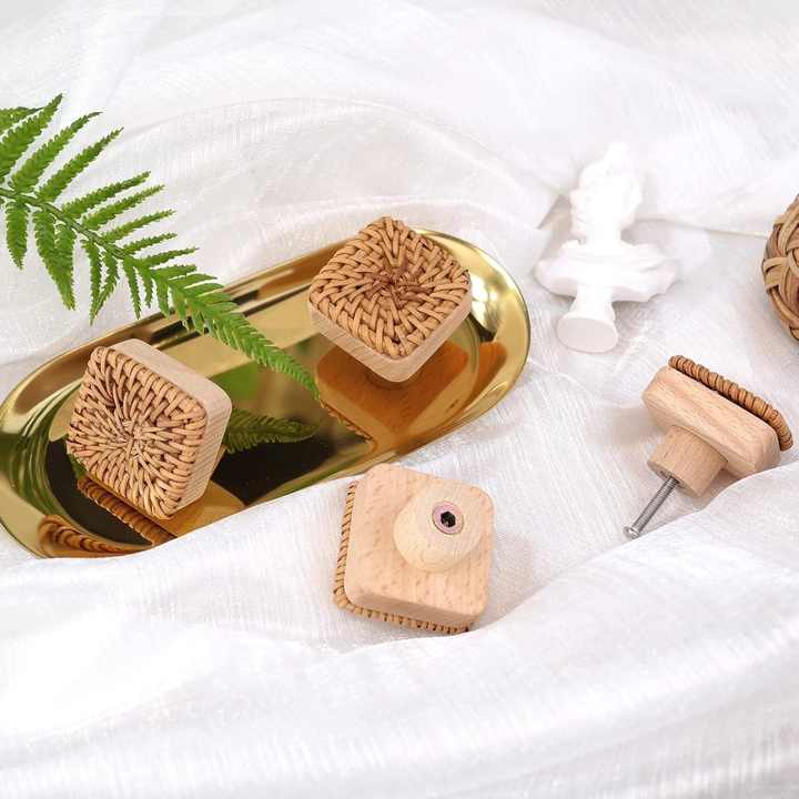 Natural Rattan Knobs for Kitchen Cabinet Pulls Decorative Dresser Wardrobe Knob Set Cupboard Door Handle
