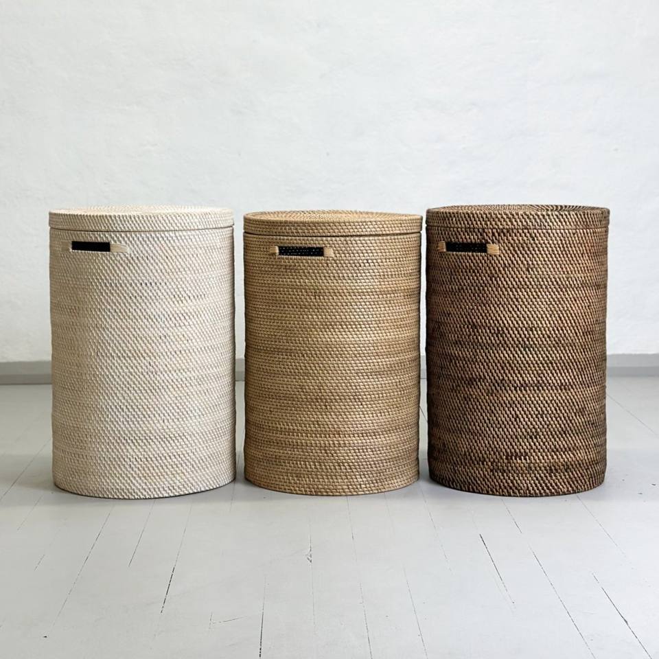 Natural rattan waste bins wholesale hand woven trash bin lidded basket containers great price
