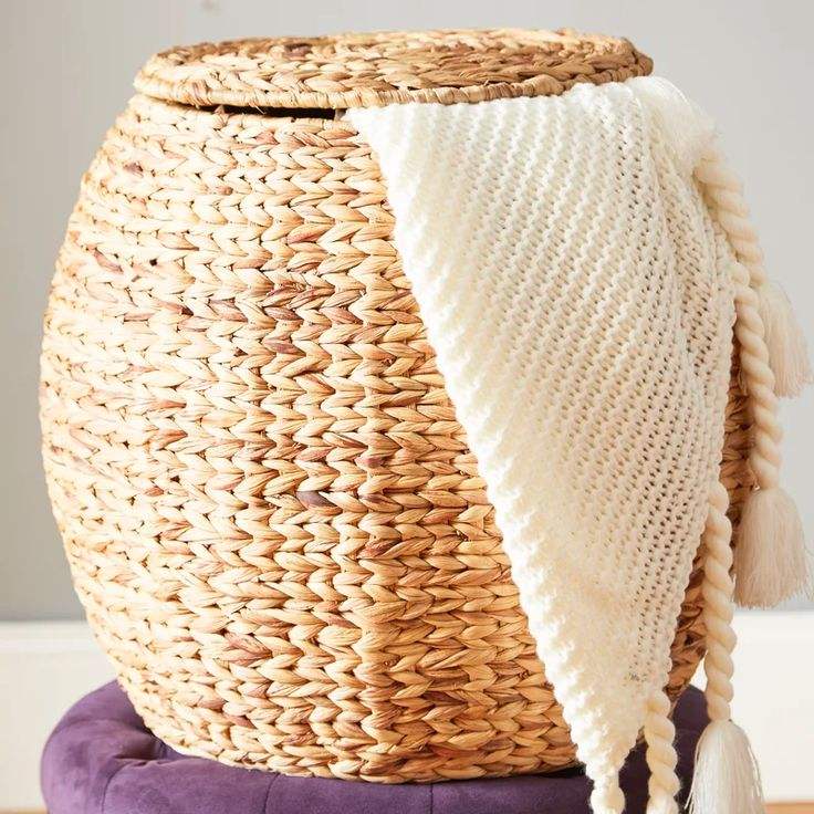 Natural rustic rattan basket with tightly woven base for secure storage of small home items or toys