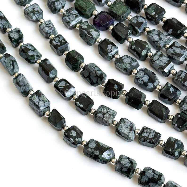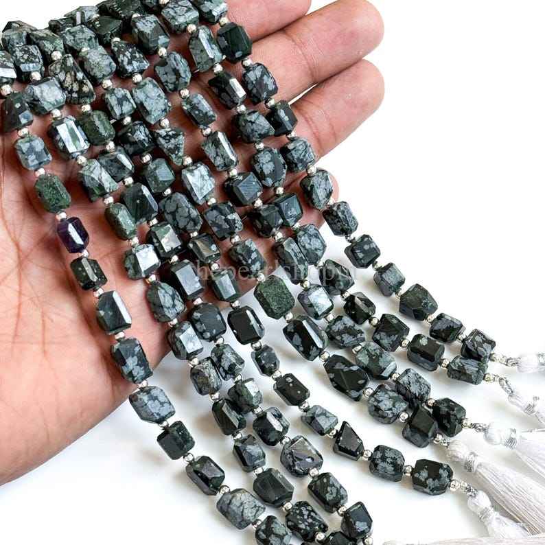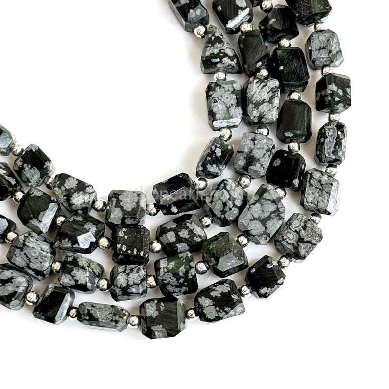 Natural snowflake obsidian faceted nugget beads 7x9 to 8x11mm loose obsidian gemstone beads for jewelry making crafts 8 inch