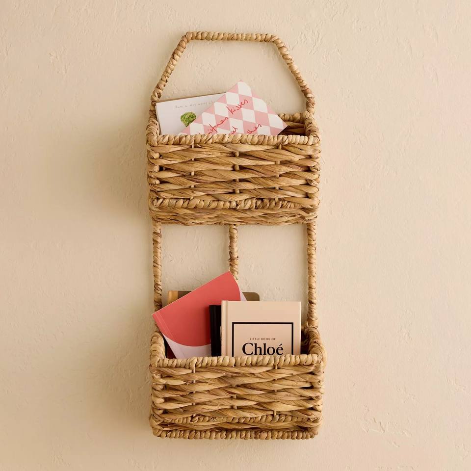 Natural water hyacinth wall mounted storage basket 2 tiers wall-hanging organizer baskets from Vietnam