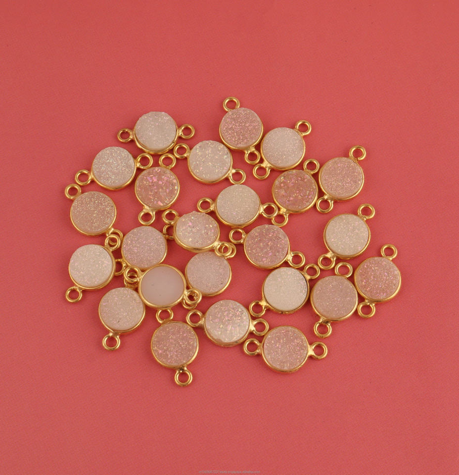 Natural white sugar druzy connector double bail charms white color mini round for jewelry making