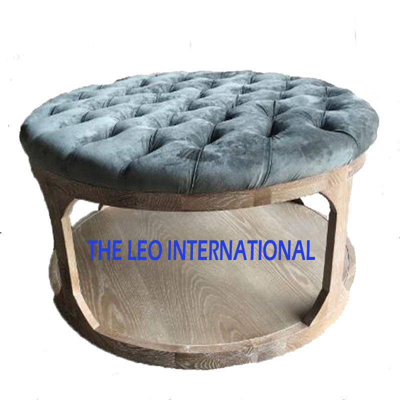 Natural wood Boleslav Button Tufted Storage footrest Upholstered Ottoman coffee table 30X30X16 Inch Beige seat luxury furniture