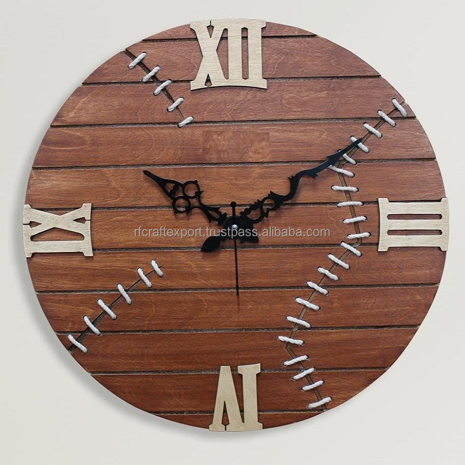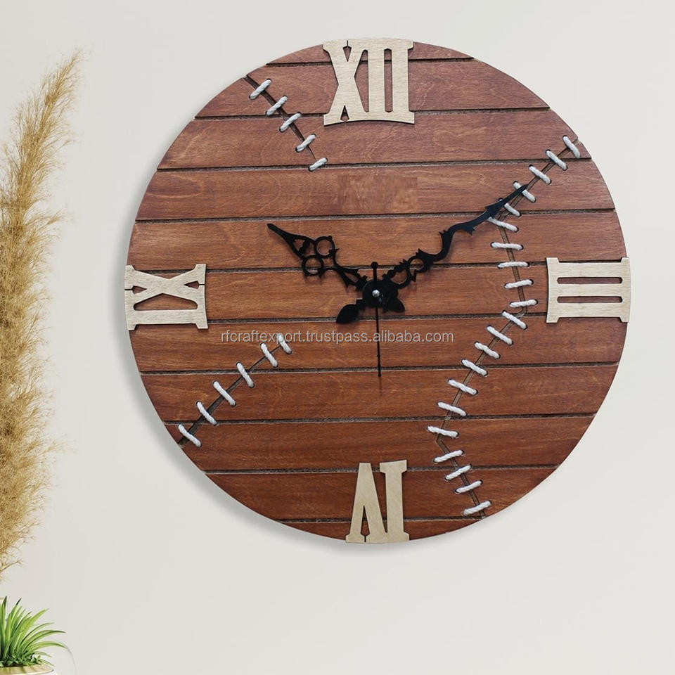 RF Crafts Handmade Natural Wood Wall Clock Customized Design and Size Hanging Plant Pattern with Resin Material From India
