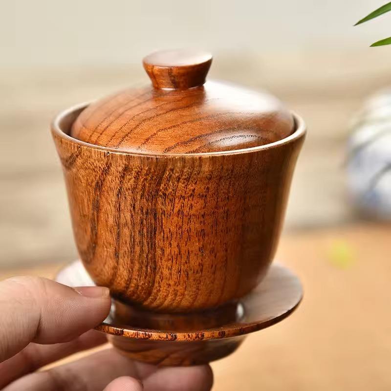 Natural wooden coffee tea cups with lids best price premium quality acacia mug and lid & saucer set from top supplier