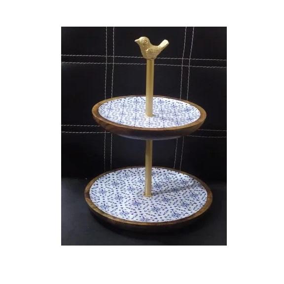Natural Wooden & Enamel Printed Cake Stand with Black Color for Restaurant Table Decoration Cup Cake Holder for Bakeware