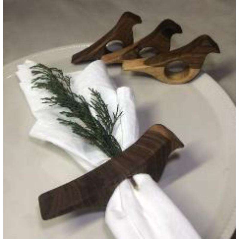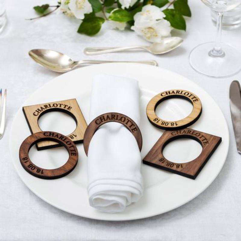 Natural wooden napkin rings with dark brown finished for classic and timeless table settings at home or events