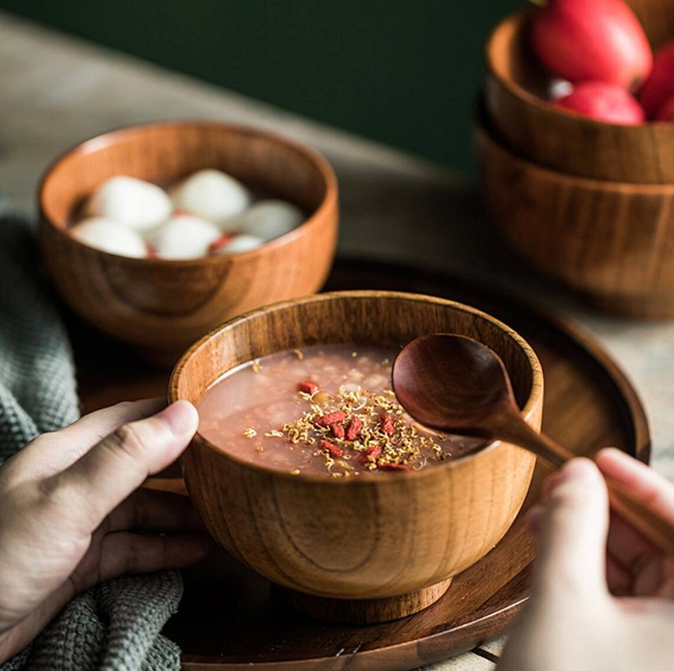Natural wooden snacks bowl dinnerware fruits salad soup serving bowl for home kitchenware tabletop restaurant wedding gift