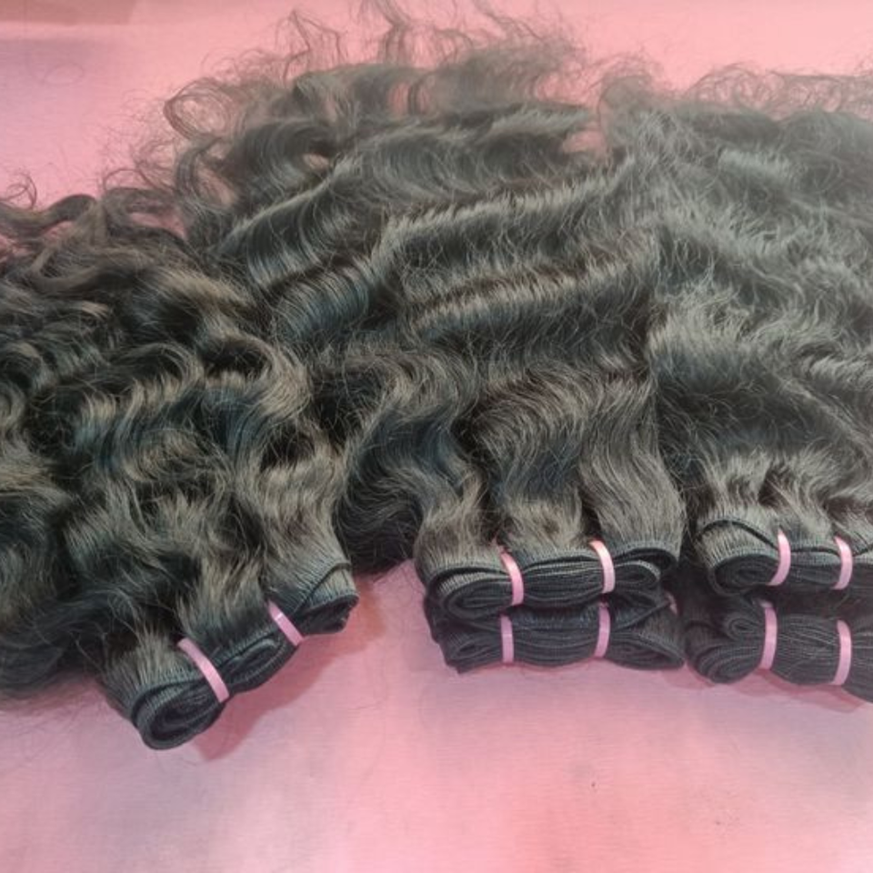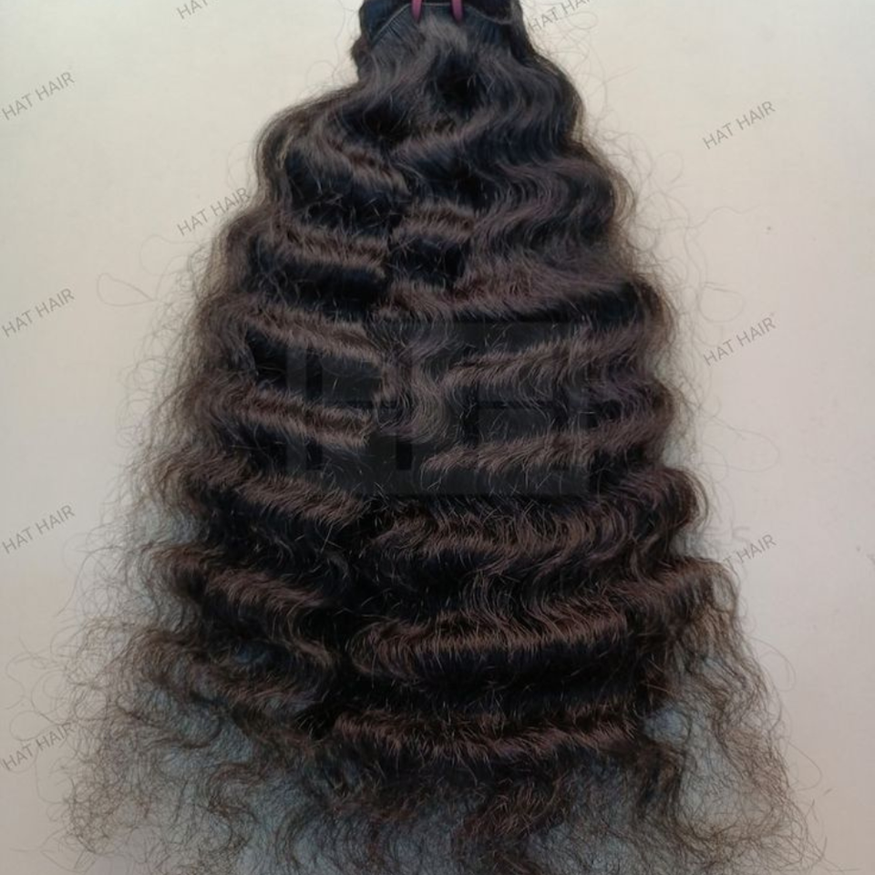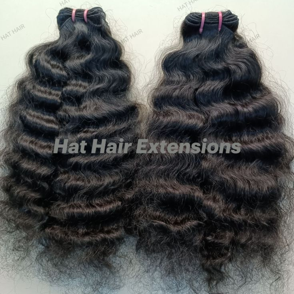 Naturally Defined Curly Soft Healthy Texture Virgin Indian Curly Human Pure Unprocessed Machine Double Weft Weave