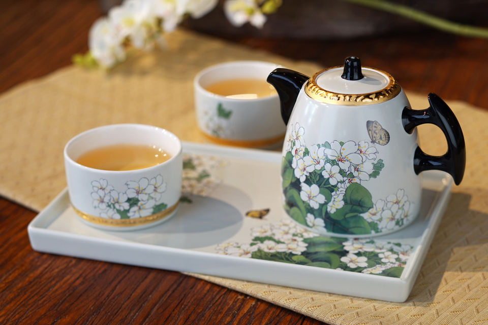 Nature Blossom Ceramic Tea Set Water Transfer Printing Screen Printed Washable for Home & Gift