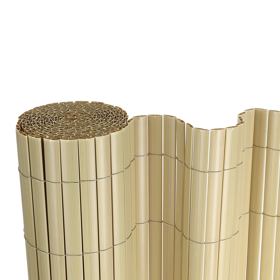 Nature Double Face PVC Bamboo Slat Panel Roll Outdoor Garden Privacy Fence Screen for Balcony Terrace Yard