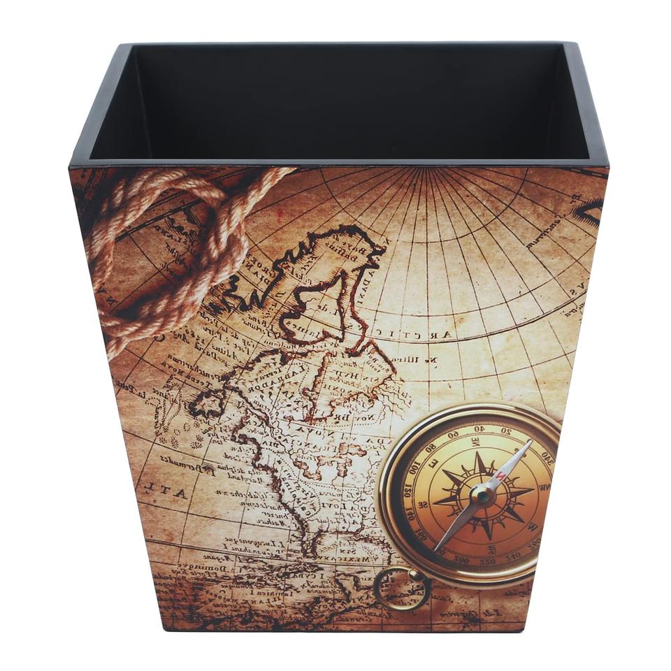 Nature-Friendly Wooden Waste Basket with Map-Printed Design Customized Sizes (21x21x21 Cm) for Hotels Dust Bin Storage Bucket