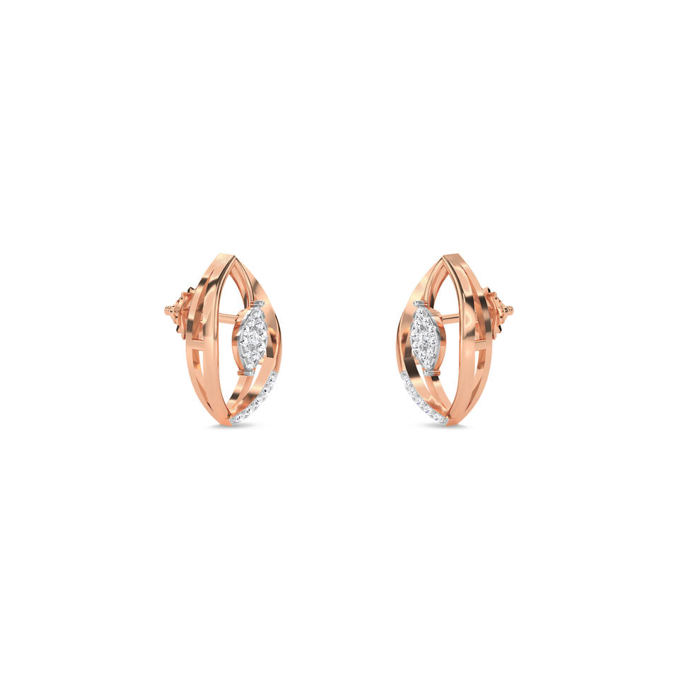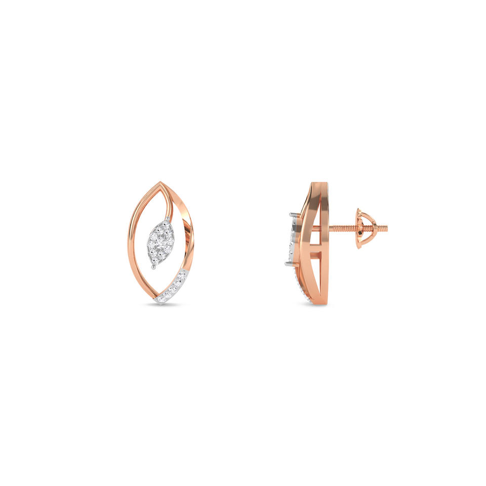 Nature-Inspired 14K Gold Leaf Earrings | 0.09 Ct Lab-Grown Diamonds | Minimalist Design in Rose, White & Yellow Gold