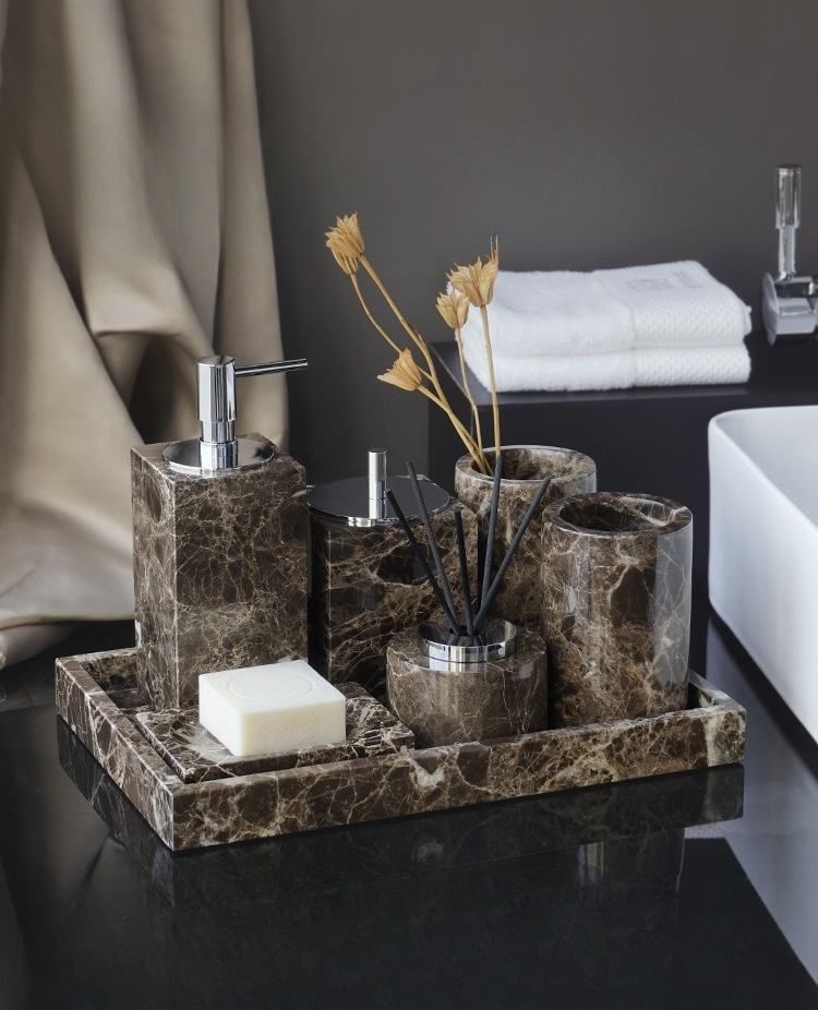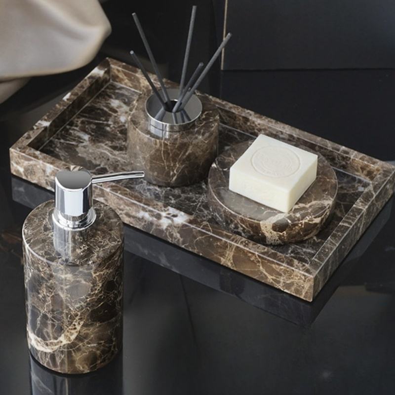 Nature Marble Deep Coffee Network Stone Stone Empty Bathroom Toiletries Set Wabi-Sabi Bathroom Amenities Kit