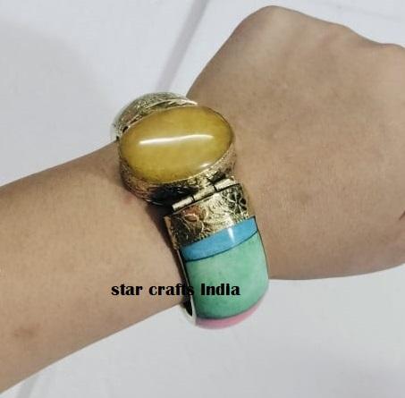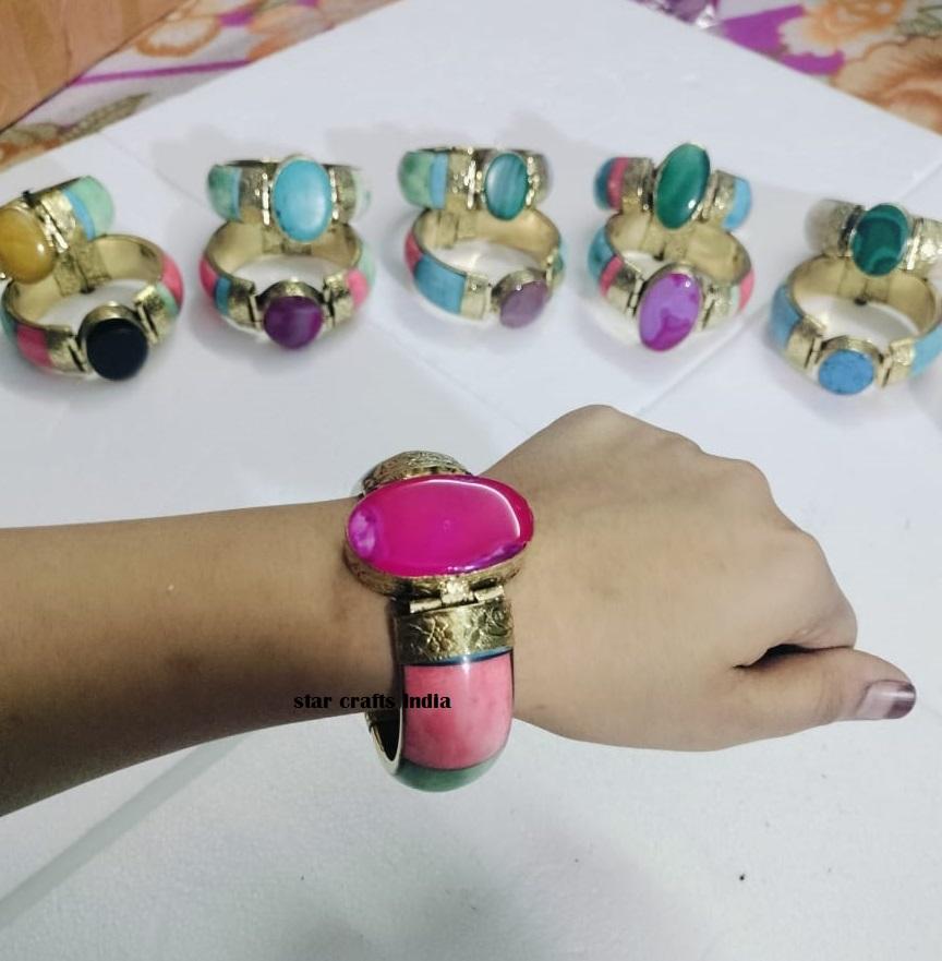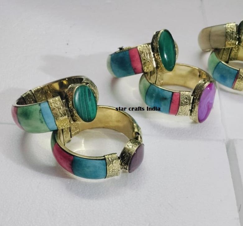 Naturel Stone with Brass & Bone Design Hot Selling Handmade Woman Hand Cuff Bracelet 100% Bone Made Bracelet