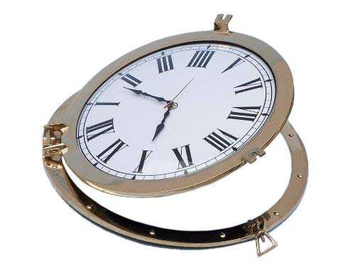 Nautical 12" Antique Vintage Clock Marine Brass Ship Porthole Analog Clock Nautical Wall Clock Home Decor Gift Itam