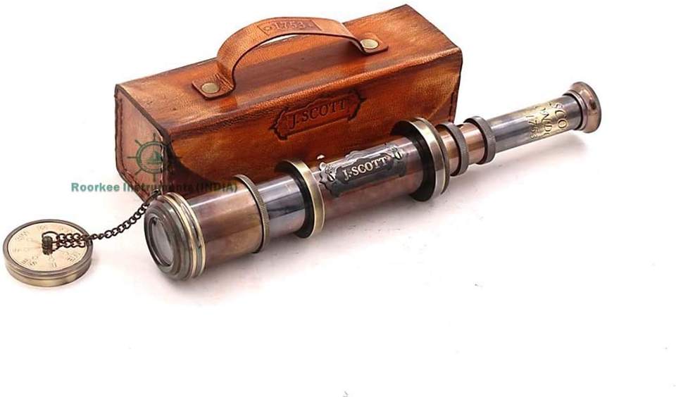 Nautical Antique Decor Spyglass Pirate Telescope J.Scott 17'' Handheld Monocular With Leather Case Brass Material Decor Gifting
