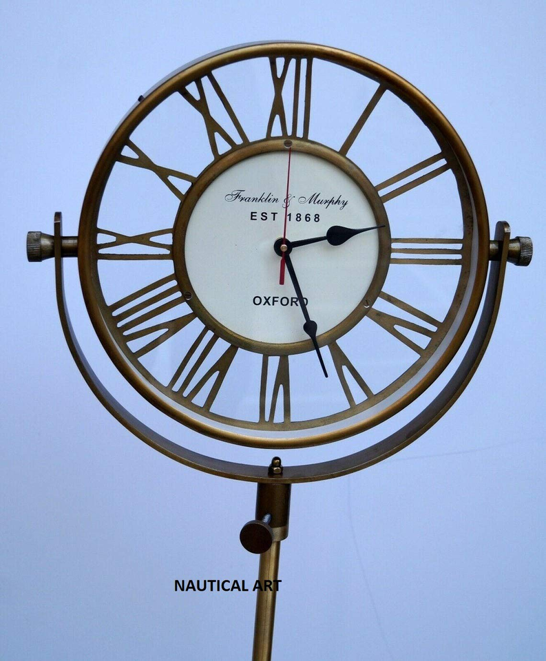 Nautical Art Brass Floor Oxford Clock Roman Numbers with Wooden Tripod Stand Decor Christmas Gift Clock calvin handicraft