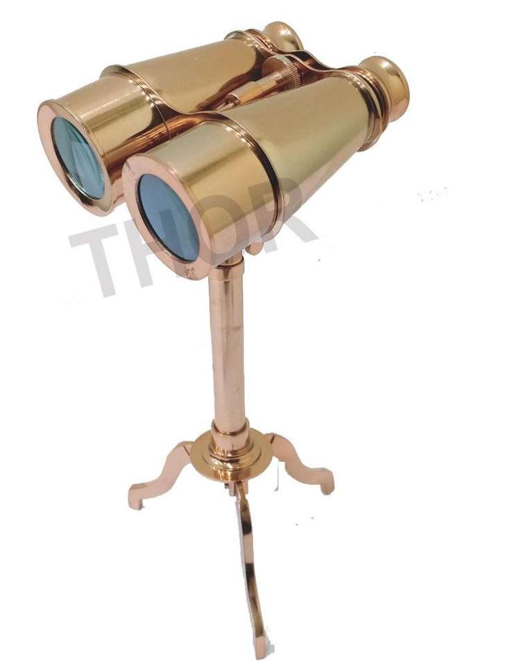 Nautical Brass Binoculars Shiny Copper Finish Tripod Stand Antique Brass Leather Binocular Decor Item