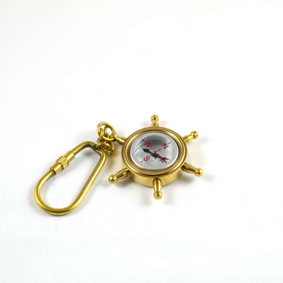 Nautical Brass Compass Wheel Keychain Vintage Ship Steering Key Ring for Car Bike and Gift Decor