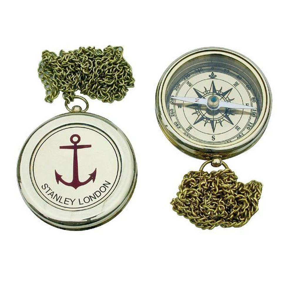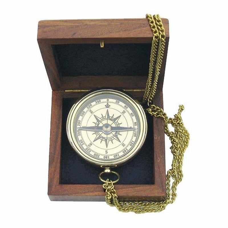 Nautical Brass Magnetic Compass Handmade gift Brass Compass Shine Antique With Golden look and chain and wooden case