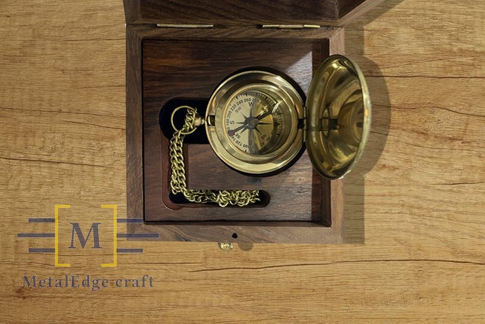 Nautical Brass Magnetic Compass with chain in wood box Handmade gift Brass Compass Antique With Shine look And Premium Case