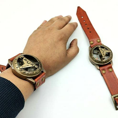 Nautical Brass Magnetic sundial Ascent Gifts Antique Brass Sundial Compass Wrist Watch Leather Band Collectible Premium Case