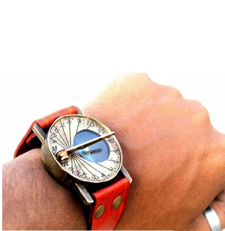 Nautical Brass Sundial Compass Vintage Wrist Watch Leather W/ Antique Sundial Working Compass for Men Women Calvin Handicraft