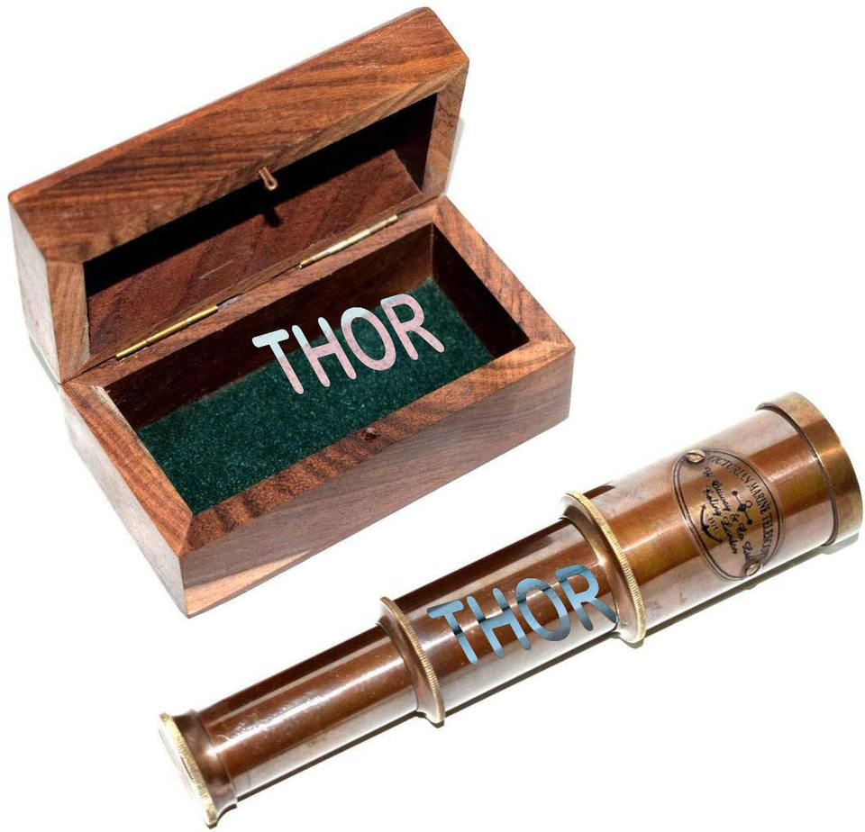 Antique 6x Solid Brass Nautical Telescope Handheld Pirate Spy Glass with Wood Box Elegant Gift Item